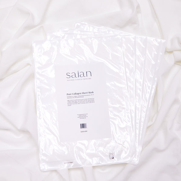 In Saian’s masks, the dry collagen sheet absorbs hydrating sprays and holds that moisture against the skin during the treatment, creating a plumping, dewy effect.