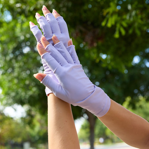 Crafted in a chic muted lavender shade, these gloves combine function with fashion. The one-size-fits-most stretch fabric ensures a comfortable, snug fit while allowing breathability and flexibility. Whether you’re in the salon or on the go, these gloves are your must-have accessory for sun protection with freedom of movement.