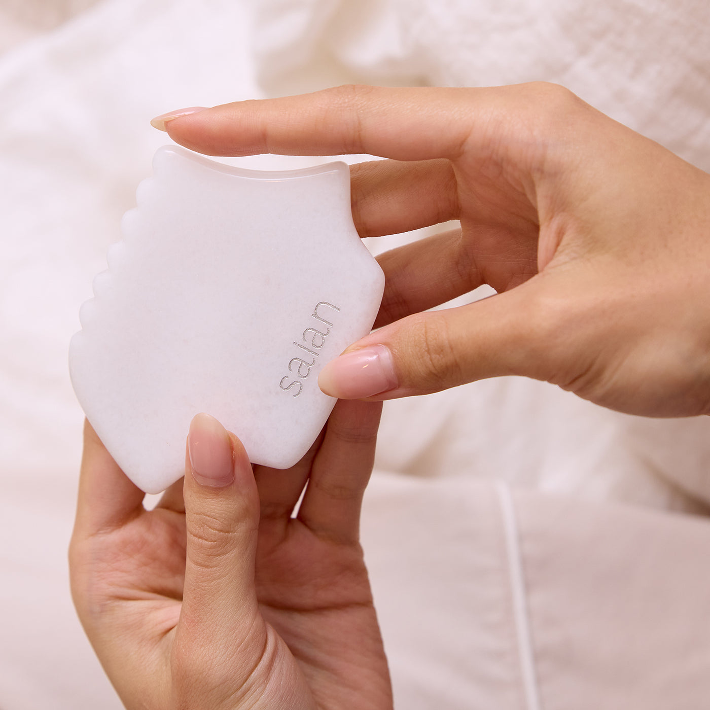 Elevate your skincare and wellness rituals with the Saian Professional Gua Sha Stone, meticulously crafted from genuine White Empress Jade. Known for its cooling touch and smooth glide, this luxurious stone combines timeless tradition with a modern, ergonomic design, making it an essential tool for estheticians and self-care enthusiasts alike.