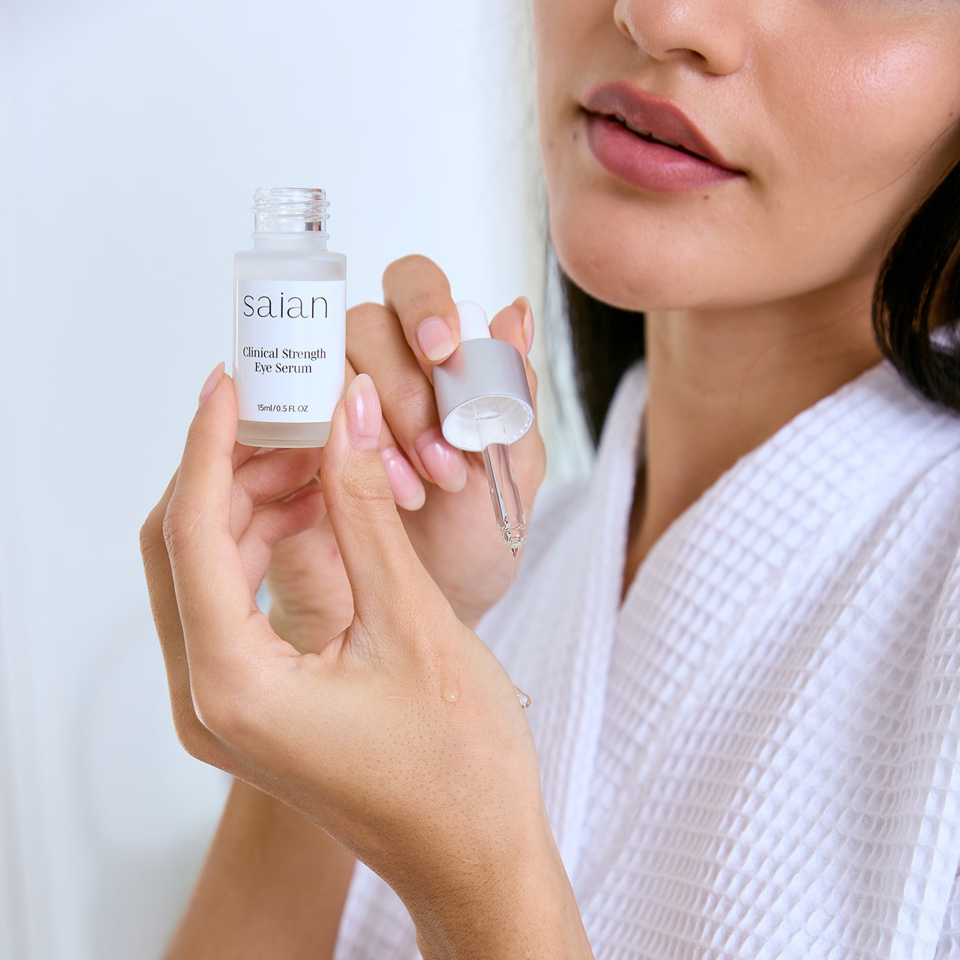 Saian Clinical Strength Eye Serum is a lightweight, professional-grade formula designed to target dark circles, puffiness, and dehydration around the delicate eye area. This advanced treatment features REGU®-AGE PF, a clinically studied complex of soy and rice peptides and oxidoreductases, known to visibly reduce under-eye bags and dark circles while improving skin texture and tone.